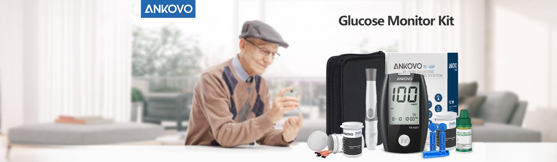 Blood Glucose Monitor Kit with Test Strips and Lancets for Happy Mother's Day ANKOVO Blood Sugar Test Kit ANKOVO Blood Sugar Test Kit ANKOVO blood glucose test kit monitored the blood sugar of hundreds of people, and each person performed multiple tests, and obtained nearly 1,000 test results in total. Measurement results are more reliable and accurate. Tips: Normal plasma glucose range for people without diabetes: < 100 mg/dL (5.6 mmol/L)~Fasting and before meal < 140 mg/dL (7.8 mmol/L)~2 hours after meals (Source: American Diabetes Association.) No Coding And Ketone Warning 450 Memory Recall 0.5μl Blood Sample 5 Seconds Fast Reading 4 Modes And 4 Reminder Alarms 7/14/21/28/60/90 Day Average Results blood sugar monitor kit ANKOVO products involve family medical care. It is our attitude to provide high-quality products and loyal services. The glucometer kit with strips and lancets includes 1 Blood Sugar Monitor 100 Lancets(30G) 100 Test Strips 1...
